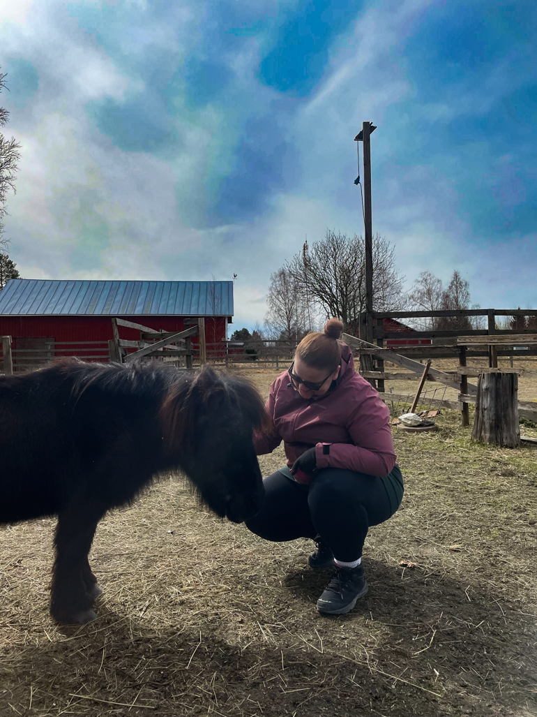 Random-kuvapläjäys, olkaa hyvä. Puhelimen muistista napattuja yksittäisiä kuvia sieltä täältä. | Pääsiäisenä käytiin katsomassa Onni-ponia. | Jossain vaiheessa tämän vuoden puolella käytiin Vennissä tapaamassa meidän suvun naisia ja söin kana-avokado-pitsan, tai siis levyn, kuten ne on Vennissä nimetty. | Töissä oon kuvaillut enemmän taas tämän vuoden puolella. Duunikamerassa on kaikki säätimet tasan toisella puolella, kuin kirjoittajan omassa ja aina saa vähän miettiä, että mitenkäs se nyt menikään. | Viime kesänä tarjoiltiin herkkuja kuustoistaveen rippijuhlissa. Tulevalle kesälle on luvassa rippikaffit ystäväperheessä. | Menneenä viikonloppuna oltiin duunissa Original Sokos Hotel Royal Vaasassa. Hitusen vajaa 30 naista oli tullut paikalle mocktaileille, kehonhuoltoon ja äänimaljarentoutukseen, aamiaiselle sekä saunomaan ja uimaan. Kiva, erilainen työpäivä. | Pääsiäisenä taivas oli takapihalla punertava, upean värinen. |